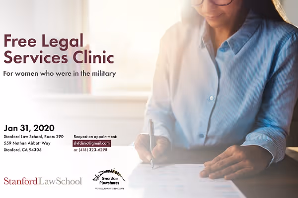 Swords to Plowshares and Stanford Law School’s Veterans Fund Fellowship has partnered to provide a free legal clinic for women who were in the military.